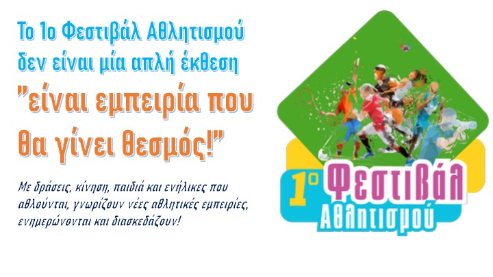 Το Φεστιβάλ Αρχική / Το Φεστιβάλ Για πρώτη φορά σε έναν χώρο Εκθέτες - Περίπτερα με όλα τα είδη αθλητισμού: Διατροφή Ένδυση - Υπόδηση Αξεσουάρ Αθλητικός Εξοπλισμός Κέντρα Αποκατάστασης, Φυσιοθεραπείας Spots Αθλητικών Ακαδημιών, με όλα τα αγαπημένα αθλήματα: Ποδόσφαιρο Μπάσκετ Τένις Βόλεϊ Κολύμβηση Τοξοβολία Ξιφασκία Ταε Κβο Ντο Ενόργανη Γυμναστική Καλλιτεχνικό πατινάζ Καλλιτεχνικό πατινάζ Άρση βαρών Ποδηλασία Handball Κωπηλασία Beach volley Πάλη Σκοποβολή Ιππασία Χειμερινό σκι κ.α. Με δράσεις για την ενεργή συμμετοχή του κοινού: Επιδείξεις αθλημάτων & χορού Mini Exercises (γυμναστικές ασκήσεις) Παρουσιάσεις με πολύτιμη ενημέρωση & χρήσιμα tips για την προετοιμασία & την προπόνηση αθλημάτων Ομιλίες αθλητών – προπονητών Για: οικογένειες παιδιά και εφήβους ενεργούς ενήλικες εσένα που ενδιαφέρεσαι για την υγεία, την άθληση, την ευεξία και την καλύτερη ποιότητα ζωής!